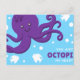 Cartão Postal Engraçado do Polvo Cartoony Azul e Violeta