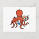 Cartão Postal Polvo como Pintor com Tinta e Pincel