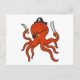 Cartão Postal Polvo como Pirata com Espada & Faca