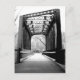 Esta é uma fotografia a preto e branco de uma bela e velha ponte de metal.