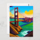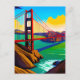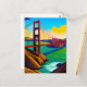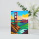 Cartão postal em uma ilustração da Ponte Golden Gate, São Francisco, contra um céu ao amanhecer