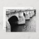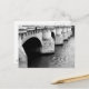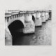 Fotografia negra e branca do rio Sena em Paris, que flui sob os pilares da pedra de uma ponte.
