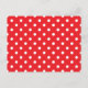 Um clássico padrão de bolinhas vermelhas e brancas em um cartão-postal em branco.
