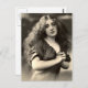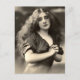 Vintage foto de uma jovem com aparência miserável segurando as mãos firmemente. O cabelo dela é uma massa selvagem de cachos