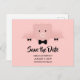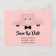 Salve o cartão de data com uma cara de porco rosa grande vestindo uma gravata formal de arco. Mostrando seus cascos pretos fofos.