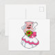 Cartão Postal Porco com vestido de noiva e buquê de flores