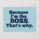 Cartão Postal Porque eu sou o chefe, é por isso