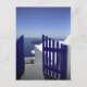 Fotografia de uma porta azul com vista para o mar, Santorini, Grécia