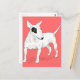 Legal rabisco Bull Terrier, com fundo de pêssego vermelho. Arte simples e sofisticada para cães, do famoso cão em forma de ovo com um ponto preto no olho. Para os fãs de raça e todos os amantes de cães.