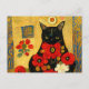 Cartão Postal Porträt einer schwarzen Katze im Jugendstil Design