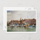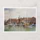 Porto de Portsmouth, Reino Unido. Os edifícios vermelhos do estaleiro naval com a torre do Guildhall ao fundo produzem um fundo para os barcos coloridos amarrados na marina. Esta é uma reprodução de uma pintura de aquarela original.