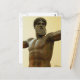 Cartão postal com imagem de uma pintura aquosa de realismo extremo de uma estátua de bronze de Poseidon, uma das doze divindades olímpicas do panteão na mitologia grega, localizada no Museu Arqueológico Nacional de Atenas, Grécia. Criada no século 5 a.C.