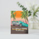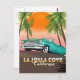 Poster de viagens de La Jolla Cove California com um belo e velho carro retrorreflector por algumas palmeiras alto balançando.