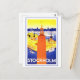 Este cartão postal é uma reprodução de uma poster de viagens vintage para Estocolmo na Suecia.