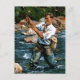 Poster de viagens restaurado e digitalmente melhorado mostrando um homem andando num rio e pescando. Imperfeições e lágrimas removidas. Cores corrigidas. Imagem cortesia da Biblioteca do Congresso.