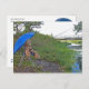 Postkarte aus der Serie "Blauer Schirm" Foto: A. Zahn für Benji-Zet Fotodesign. Hier Zusammen mit Ursinho beim Angeln am Kanal.