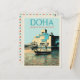Um presente de excelente para todos os amantes do Qatar ideais para oferecer ou enviar a um amigo, um belo cartão postal de ilustração retrô original com uma vista do Museu de Arte Islâmica de Doha, Catar