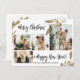 O Elegante, moderno Dourado e branco deixa 4 cartões postais de Natal feliz para colagem de fotos. Este modelo de cartão-postal festivo, mimalista, cômico, de quatro (4) fotos, apresenta uma bonito colagem fotográfica, folhagem de ouro falso, folhas botânicas, winterberry e diz Feliz Natal e Feliz ano novo! O texto de saudação de "Feliz Natal e Feliz ano novo" é escrito em um belo tipo de letra tipografia escrita com letra preta e escrita sobre fundo branco. Bonito manutenção para sua família e amigos nesta época de Natal e Férias.