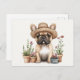 Cartão Postal Potes de Flor para Jardinagem de Bulldog Francês