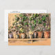 Um cartão postal de arte com a pintura do artista francês Paul Cézanne (1839-1906), intitulado Flower Potes (c. 1887). Uma vida sem saída de vários potes de argila cheios de gerânios em uma estufa na propriedade Cézanne, em Aix, França.