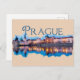As luzes do início da noite refletem-se no rio nesta imagem de souvenir do horizonte de Praga. Este design de souvenir faz parte da minha série Destino. Este cartão postal é totalmente personalizável.