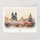 Cartão postal com mercado de Natal de Praga ao crepúsculo, cidade medieval cênica na República Tcheca