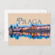 As luzes do início da noite são refletidas no rio nesta imagem de recordação da silhueta de Praga. Este design de recordação faz parte da minha série Destino. Este cartão postal é totalmente personalizável.