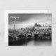 Uma fotografia a preto e branco do Castelo de Praga, vista sobre o rio Vlatva pela Ponte Maioria de Manesuv, figura neste cartão postal. O tamanho da placa é de 13,9 cm x 10,6 cm e é impresso no estoque da placa de 325 gsm ultra-pesada com acabamento de brilho.