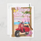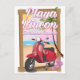 Cartaz de viagem de férias na praia da Playa Rincon República Dominicana de uma scooter vermelha na praia arenosa.