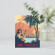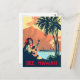 Cartão Postal Praia trópica do Havaí, mulher tocando violão na c