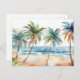 Cartão Postal Praia Tropical Sandy Watercolor, Palm Trees