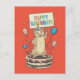 Cartão Postal prairie dog parado no bolo feliz e sinal de aniver