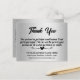 Cartão postal de agradecimento para negócios em Prata Metálica apresenta fundo prateado metálico, uma arte de coração estilosa e um modelo de texto. Um cartão postal de agradecimento perfeito para marketing para negócios. Por favor, clique no botão personalizar para personalizá-lo com seu texto. Por gentileza, visite minha loja "loveyouart" para outros ou designs semelhantes.