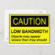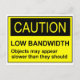 Este sinal amarelo de aviso de largura de banda baixa adverte que "os objetos podem parecer mais lentos do que deveriam." Esse é o efeito de não ter velocidade suficiente na linha ou na rede. Tudo na tela do computador leva muito a pouco para ser resolvido. Então, novamente, alguns de seus colegas de trabalho também podem ser de pouca largura de banda e também parecem estar em câmera lenta.