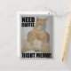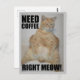 Como os bebedores de café podem se relacionar! Este cartão-postal engraçado mostra a imagem de um adorável gato-do-mato-de-olhos-sonolento sentado em pé, junto com o trocadilho - "Precisa de café com a direita!"