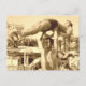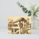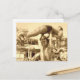 Este postal mostra uma fotografia antiga de dois amigos se divertindo na praia.