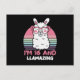 Celebre o dia especial dela com um sorriso! Este desenho engraçado de aniversário Llamazing Llama apresenta uma adorável lhama de óculos em forma de coração com um fundo de arco-íris retrô, a mistura perfeita de humor, fofura e estilo. Um presente de aniversário divertido e único para mães, avós, irmãs ou amigas que amam lhamas, trocadilhos divertidos e desenhos temáticos de animais. Este design versátil funciona lindamente em camisetas, canecas, cartões de aniversário, bolsas e artigos para festas. Se você está comprando para um amante de lhamas, um membro da família ou um melhor amigo, este design torna os aniversários inesquecíveis.