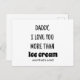 O cartão postal engraçado do Dia dos Pais ou de aniversário para o pai é a maneira perfeita de enviar amor, risadas e apreço ao melhor pai de todos! Uma maneira memorável de mostrar ao pai que você se importa - enquanto o faz rir! Perfeito para enviar pelo correio, enquadrar ou guardar como lembrança. Papai, eu te amo mais que sorvete Cartão do Dia dos Pais para o pai, presente de aniversário para o pai