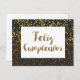 Cartão Postal Preto e Dourado Feliz Cumpleanos