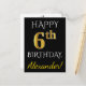 Cartão Postal Preto, Falso Ouro 6º Aniversário + Nome Personaliz