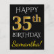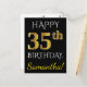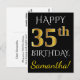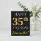 Cartão Postal Preto, Faux Dourado 35.º Aniversário + Nome Person