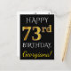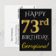 Cartão Postal Preto, Faux Dourado 73º Aniversário + Nome Persona