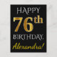 Cartão Postal Preto, Faux Dourado 76.º aniversário + nome person