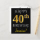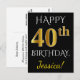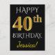 Cartão Postal Preto, Faux Dourado aniversário de 40 anos + Nome