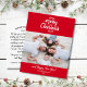 Espalhe o elogio do feriado com este cartão moderno que caracteriza sua foto horizontal, Feliz Natal em uma tipografia mão-indicada por letras do roteiro, acentos botânicos do sprig, ajuste-o toda contra um fundo do vermelho do Natal. O espaço de características da parte traseira para um espaço datilografado da nota ou da supressão e da licença do feriado ao handwrite um. Igualmente adicione seu endereço do remetente. Divertimento e moderno contudo simples e festivo - aperfeiçoe para a alegria de espalhamento do Natal.