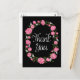 Cartão Postal Preto Obrigado Pink Peony Floral Wreath