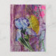Cartão Postal Pretty Iris Flower pink stars mixed media collage