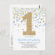 Cartão Postal Primeiro aniversario de Confetti Glitter Azul Dour