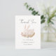 Lindo cartão de agradecimento de primeiro aniversário com tons de rosa apresenta um adorável coelhinho dormindo em aquarela em uma cama boho floral e de folhas. Na frente, há uma linda caligrafia de agradecimento, e no verso inclui uma mensagem de agradecimento personalizável com endereço de retorno. Este cartão pode ser personalizado para qualquer idade da criança!