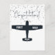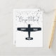 Silhueta preta de avião simples com detalhes do primeiro vôo solo. Personalize com os detalhes do primeiro vôo do piloto estudante e adicione uma mensagem personalizada no verso ou use a nossa. Lembre-os de que você está orgulhoso deles e ajude-os a celebrar seu primeiro marco!